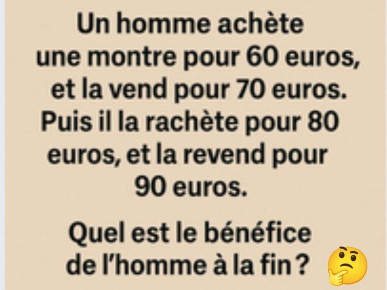 Voici une petite énigme qui a piégé plus d’un esprit logique et suscité de nombreux débats sur les réseaux sociaux. À première vue, elle semble simple, presque trop facile. Et pourtant, beaucoup tombent dans le piège. Alors, prenez quelques secondes, respirez un grand coup… et essayez de résoudre ce casse-tête financier.