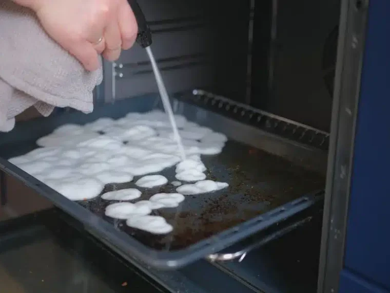 Une fois la pâte agie, utilisez un chiffon humide pour essuyer l’intérieur du four. Vous pouvez également utiliser une spatule en plastique pour aider à décoller les résidus tenaces. Ensuite, vaporisez un mélange d’eau et de vinaigre à l’intérieur du four pour désinfecter efficacement les surfaces.