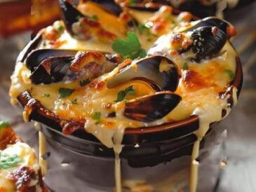 Prendre le saumon (ôter la peau) et le détacher en lanières (effilocher grossièrement). Couper les queues de crevettes en deux dans l’épaisseur (donc sur la longueur).