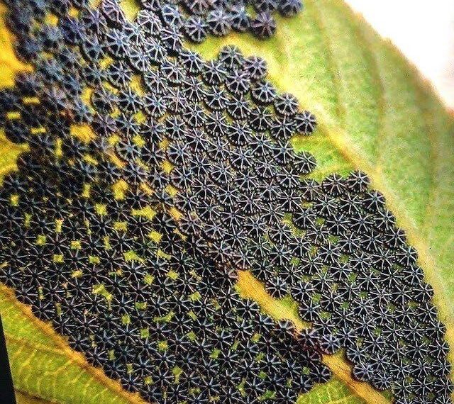 Commençons par l’aspect le plus captivant : les œufs. L’image que j’ai vue montrait des œufs ressemblant à une délicate couche de dentelle noire, presque comme une œuvre d’art peinte sur une feuille. En y regardant de plus près, on découvre la beauté véritable de ces minuscules formes géométriques. Elles sont une preuve saisissante de la symétrie et de la précision que l’on trouve dans la nature — une petite mais extraordinaire manifestation du cycle de la vie. Le fait qu’ils soient disposés en grappes ne faisait qu’ajouter à leur attrait, donnant l’impression d’un motif soigneusement conçu.