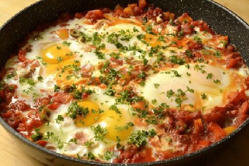 Ces œufs à l’espagnole sont un délice pour votre prochain brunch. Prenez une poêle avec un couvercle – ou improvisez un couvercle avec une plaque à biscuits si vous n’en avez pas. Bien que cela change le goût, vous pouvez aussi utiliser du paprika doux si vous ne trouvez pas de paprika fumé.