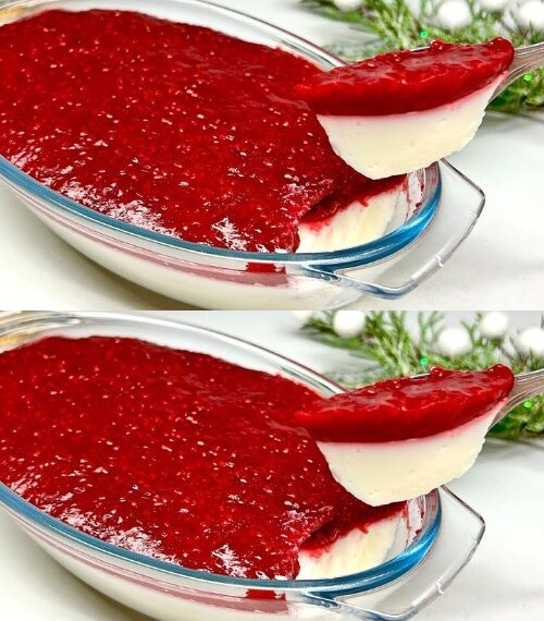 • Verse la sauce aux framboises refroidie sur le pudding déjà pris.