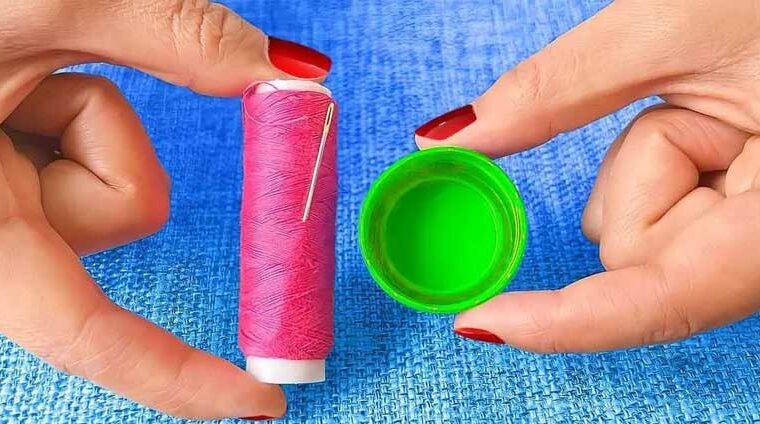 Enfiler une aiguille avec un bouchon de bouteille : une astuce simple et astucieuse